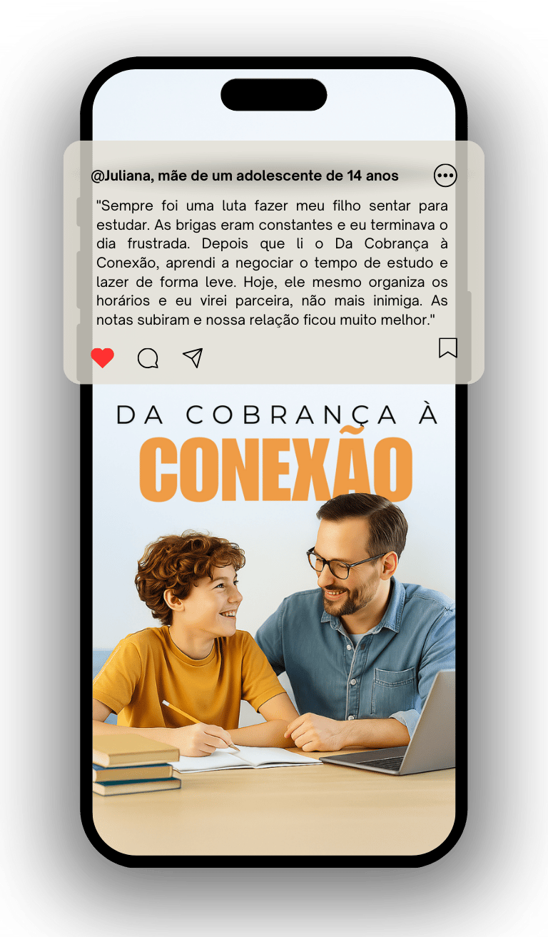 Da Cobrança à Conexão — Guia prático para ajudar seu filho a estudar melhor, com menos estresse e mais motivação.